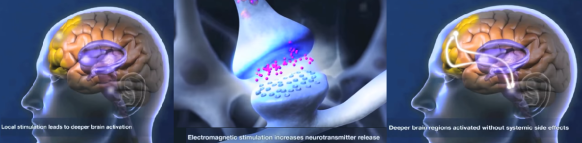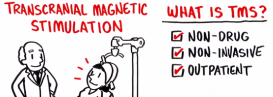 Transcranial magnetic stimulation (TMS) is a proven noninvasive procedure that uses magnetic fields to stimulate nerve cells in the brain to alter brain function.